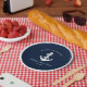 The nautical anchor design adds a timeless aesthetic to this baby shower paper plates. Featuring your pirate saying, and a navy blue anchor and rope, personalise to create a unique nautical paper napkin for your upcoming baby shower.