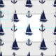 Nautical Navy blue anchor/blue sailboat silhouette Fabric