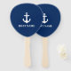 Nautical Navy Blue Anchor Boat Name Hand Fan Paddle Style