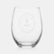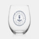 Nautical Navy Blue Anchor Boat Name Stemless Wine Glass