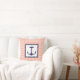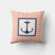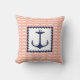 Nautical Navy Blue Anchor Coral Pink Waves Cushion