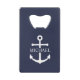 This personalised gift features a white anchor design with custom name in a classic white serif font on navy blue background.