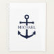 This personalised gift features a navy blue anchor design with custom name in a classic navy serif font.