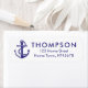 A nautical themed navy blue name and return address label with an anchor and rope next to your family name and address details.