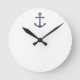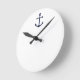 Modern Minimalist Nautical Round Wall Clock featuring navy blue anchor on white background.