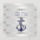 Clean, elegant, chic and stylish customisable party accessories with a white background with silvery gradient stripes and a centred navy blue anchor.