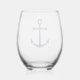 Nautical Navy Blue Anchor Stemless Wine Glass