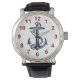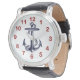 Romantic Vintage Look Nautical Navy Blue Anchor on White Background - Wrist Watch