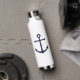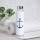 Modern Minimalist Nautical Water Bottle features navy blue anchor on white background.