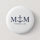 Designed with a navy blue anchor illustration, it features personalised bride and groom monogram and wedding date in a navy blue serif font on a white background.