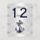 Elegant Nautical Navy Blue Anchor, White with Silver Look Stripe Background - Table Number Card