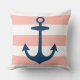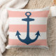 Nautical Navy Blue Anchor with Blush Pink Stripes Cushion