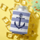 Nautical navy blue anchor with rope/blue stripe can cooler