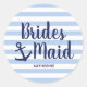 Nautical navy blue bridesmaid with anchor & stripe classic round sticker