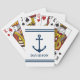 Nautical playing cards features a simple coastal style boat anchor with border of horizontal stripes and custom monogram text. Personalise with a first or last name. Classic white and navy blue colour scheme can be modified.