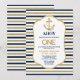 Nautical Navy Blue Gold Anchor Birthday Party Invitation