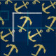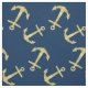 Nautical Navy Blue Gold Glitter Anchor Pattern Fabric.