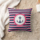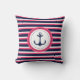 Nautical Navy Blue Hot Pink Stripes Anchor Design Cushion