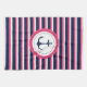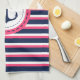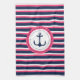 Nautical Navy Blue Hot Pink Stripes Anchor Design Tea Towel