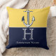 Nautical Navy Blue Mustard Yellow Anchor Monogram Cushion