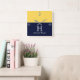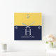 Nautical Navy Blue Mustard Yellow Anchor Monogram Square Wall Clock