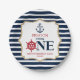 Nautical Navy Blue ONE First 1st Birthday Party Paper Plate