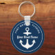 Nautical Navy Blue Personalized Boat Name Anchor Key Ring