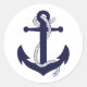 Nautical navy blue silhouette anchor rope/design 2 classic round sticker