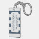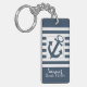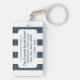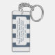 Bold blue and white stripes with nautical anchor design, beach house or condo key chain with a place on back to add all of your important key return information if the keys are lost.