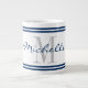 Nautical navy blue stripe custom monogram big Giant Coffee Mug gift. Monogrammed coffee cup for sailor, boat captain, skipper, teacher, tutor, coach, educator, wife, girlfriend, boyfriend, coworker, colleague, employee, friend, mum, dad, husband, sister, aunt, uncle, grandma, grandpa, boss etc. Enormous size drinkware design for men, women and kids. Sailing, boating and yachting theme design. Super large XL oversized mugs for home or office. Unique Birthday or Christmas gift idea for him or her.
