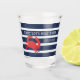 Nautical Navy Blue Stripes Red Crab Boat Name Shot Glass