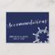 Nautical navy blue and white wedding accommodations business cards with white wheel and customisable text