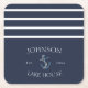 Nautical Navy Blue White Family Name Lake House Square Paper Coaster