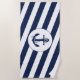 Nautical Navy Blue & White Stripe Anchor Beach Towel