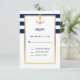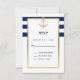 Elegant custom RSVP nautical wedding cards. Navy blue and white stripes with faux gold frame and anchor. Perfect any destination/nautical/summer wedding theme. Editable cards - easy to add your info or changed text font, colour and size.