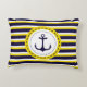 Nautical Navy Blue Yellow Stripes Anchor Design Decorative Cushion