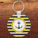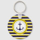 Nautical Navy Blue Yellow Stripes Anchor Design Key Ring