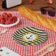 Nautical Navy Blue Yellow Stripes Anchor Design Paper Plate