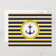 Nautical Navy Blue Yellow Stripes Anchor Design Postcard