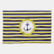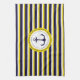 Nautical Navy Blue Yellow Stripes Anchor Design Tea Towel