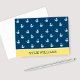 Nautical Navy Blue Yellow Whale Pattern Custom Note Card