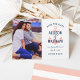 Nautical "tying the knot" wedding save the date cards feature an engagement photo of the couple with a modern and simple wedding monogram of the bride and groom names displayed over a boat anchor. Personalise with your photo, names, and wedding date. Nautical navy blue, white, and blush pink (peachy pink) summer colour scheme. A chic pattern of horizontal stripes dresses up the back of the card.