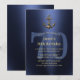 Nautical Navy Blue Gold Anchor 70th Birthday Party Invitations.