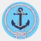 Nautical navy/light blue silhouette anchor rope classic round sticker