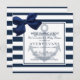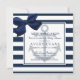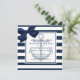 Nautical Baby Shower invitation featuring white and navy stripes with anchors and a ribbon.