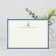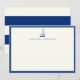 Nautical navy sailing boat custom note card. A navy blue and ivory white nautical themed flat note card which would make a great addition to any nautical themed stationery wardrobe. Maybe you live near the sea, own a boat or are just a sea lover - this is the perfect card for your correspondence wardrobe. The card can be personalised with the inclusion of a name. The back of the card is in a modern, elegant and stylish striped ivory white and navy.