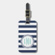 Nautical Navy Stripe & Aqua Monogram Luggage Tag