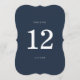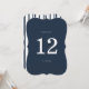 Nautical Wedding Die-Cut Table Number in classic navy and white — a chic coastal reception table sign perfect for elegant seaside weddings. Inspired by timeless Coastal Elegance and yacht-club style aesthetics, this navy stripe scalloped table number adds a refined preppy touch to your reception tables. Perfect for the modern coastal bride. Pair with matching menus, place cards, and striped stationery for a polished wedding tablescape.
