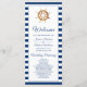 Navy blue stripes and watercolor steering wheel create a classic nautical look, ideal for elegant nautical wedding or beach wedding. Modern and sleek, elegant font combo.