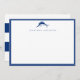 Nautical navy swordfish custom note card. A navy blue and white nautical themed flat note card. This is a great addition to any stationery wardrobe whether professional or personal. Maybe you live near the sea, own a boat or are just a sea lover - this is the perfect card for your correspondence wardrobe. The card can be personalised with the inclusion of a name. The back of the card is in a modern, elegant and stylish striped white and navy.